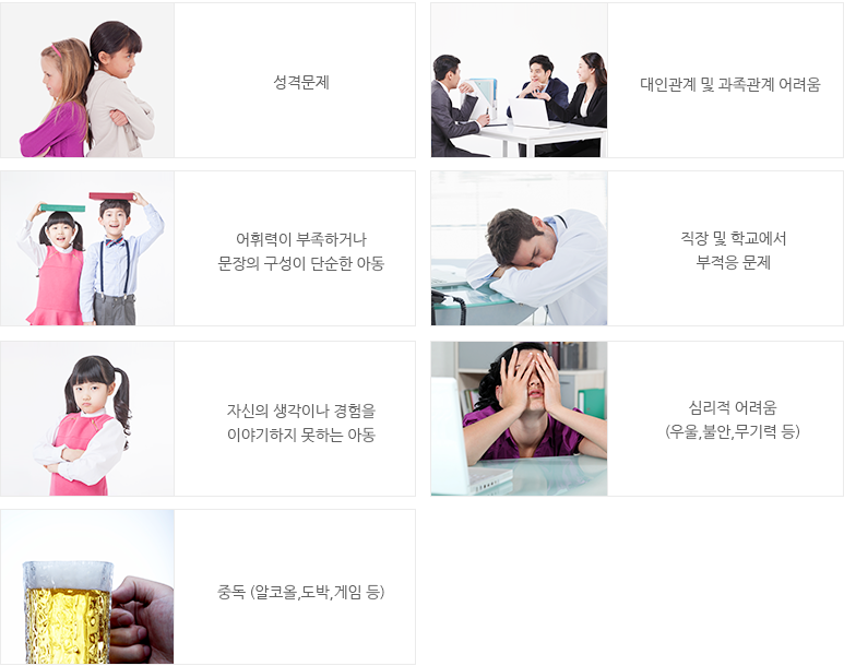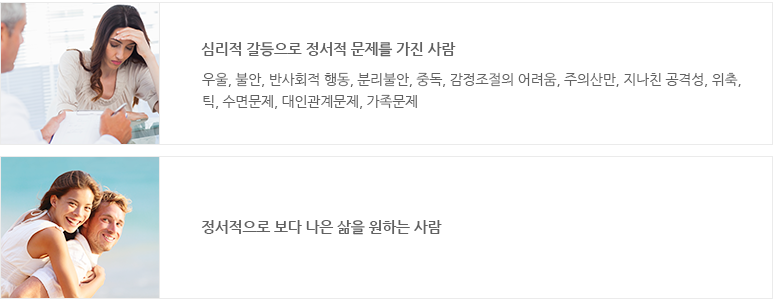 심리적 문제점들을 인식하고 극복해 가는 전문적인 심리치료입니다.